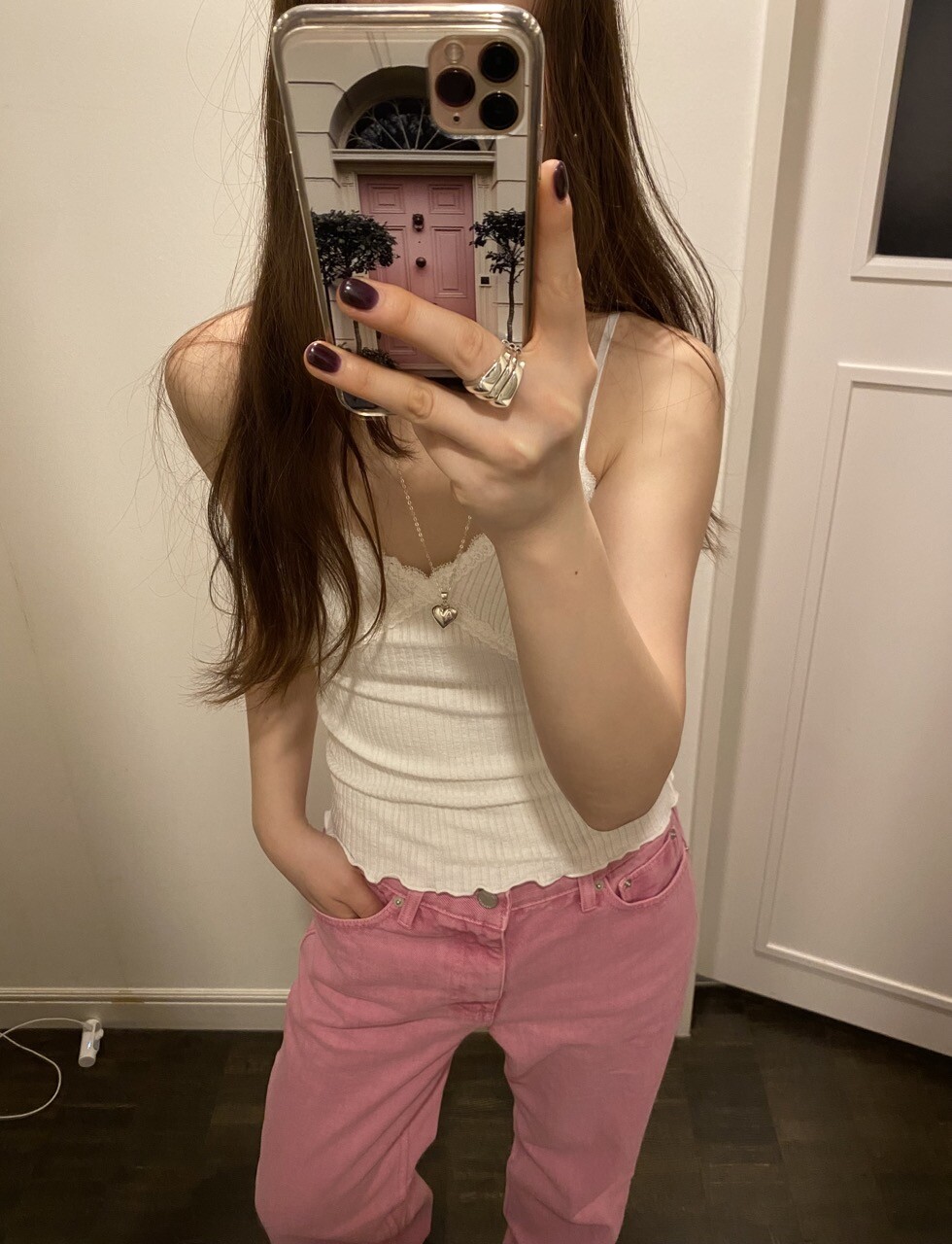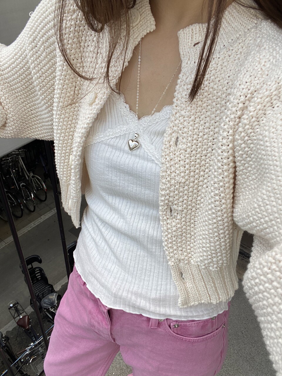 러블리하면서 모든룩의 마지막에 포인트가 되어주는 하트 목걸이 입니다.