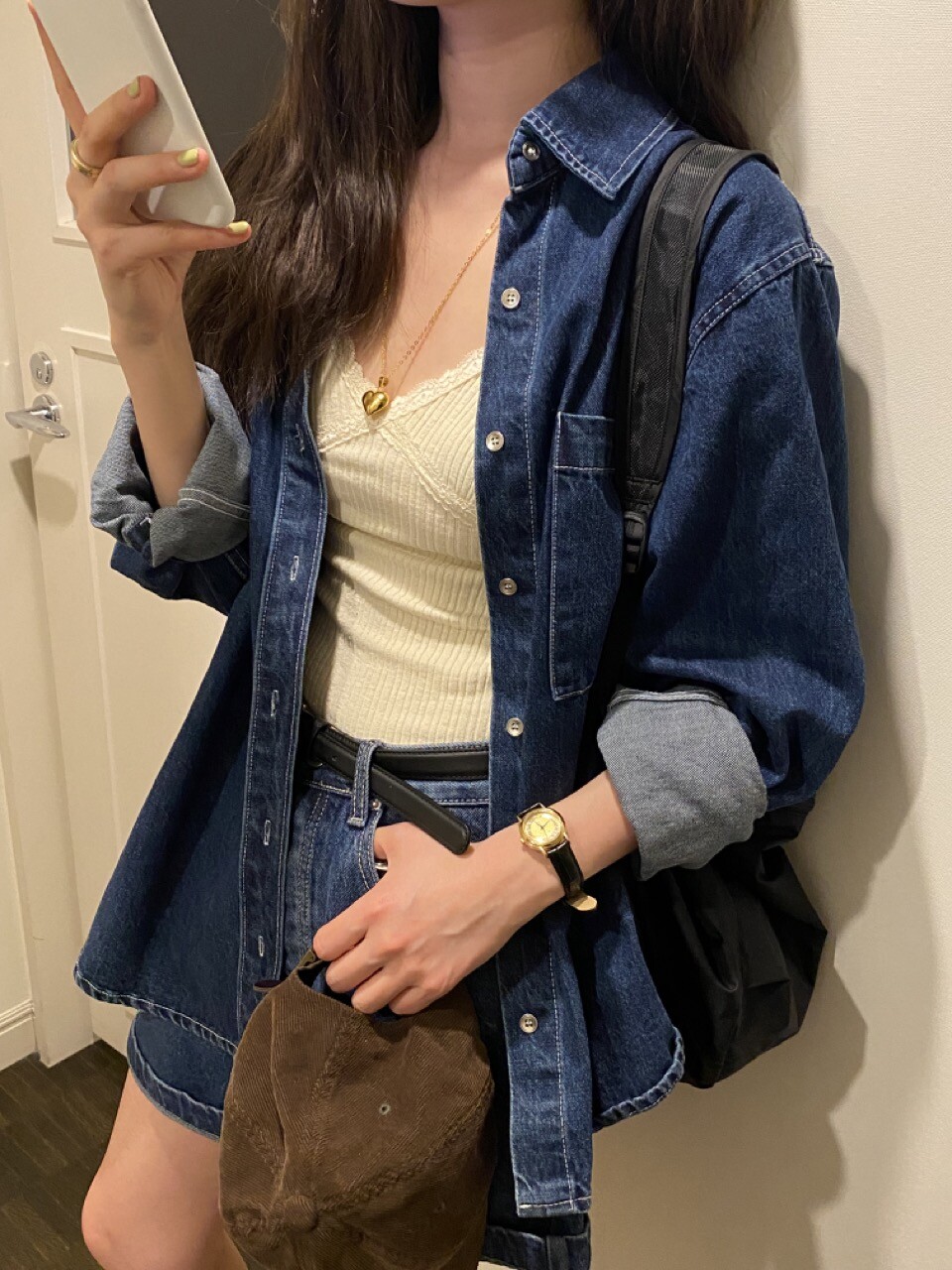 통통한 두께감으로 제작되어 사랑스러운 니트나 베이직한 셔츠등과 다양하게 매치 가능한 아이템이여요:)