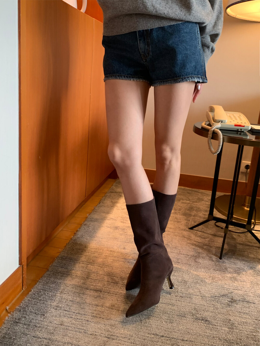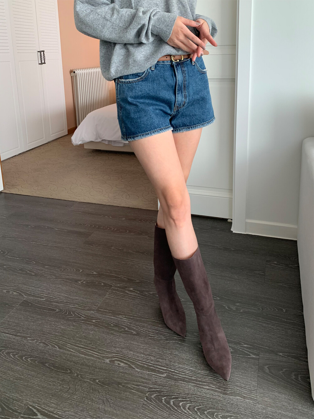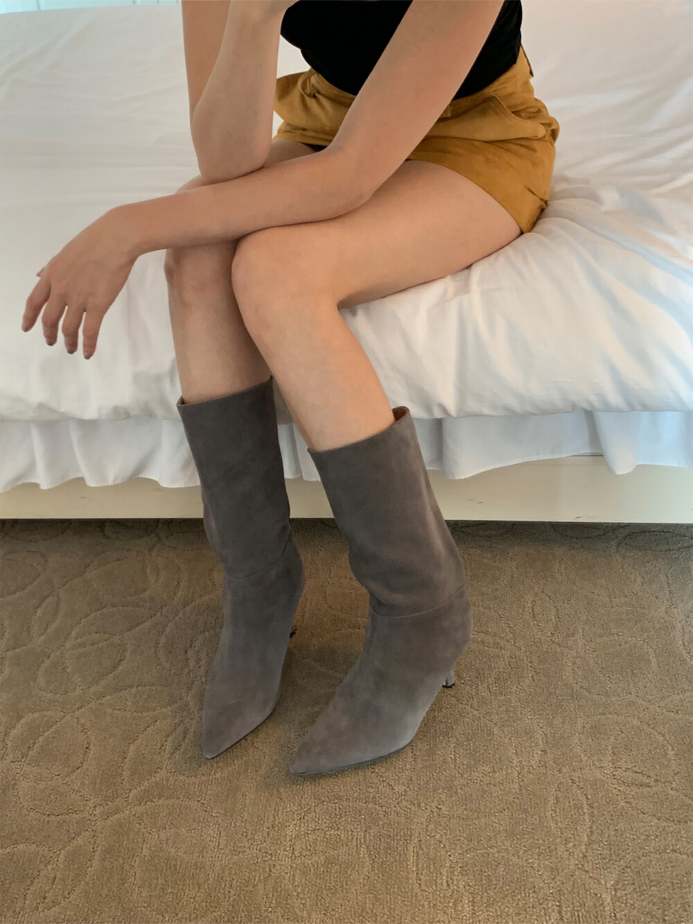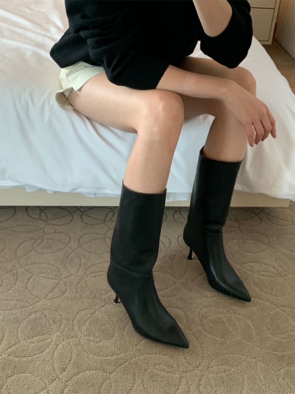leather heel boots (5color)