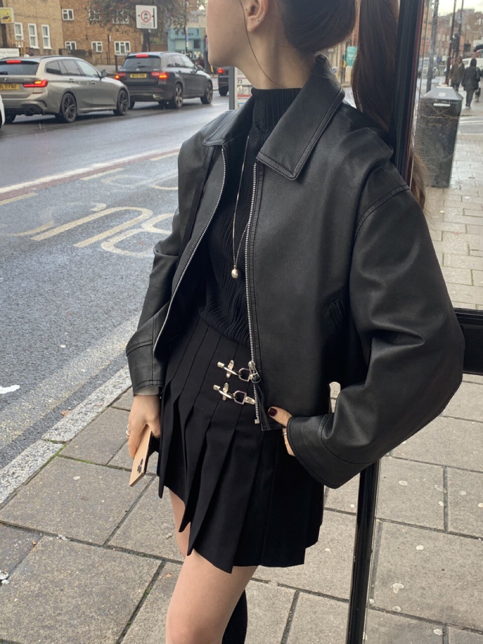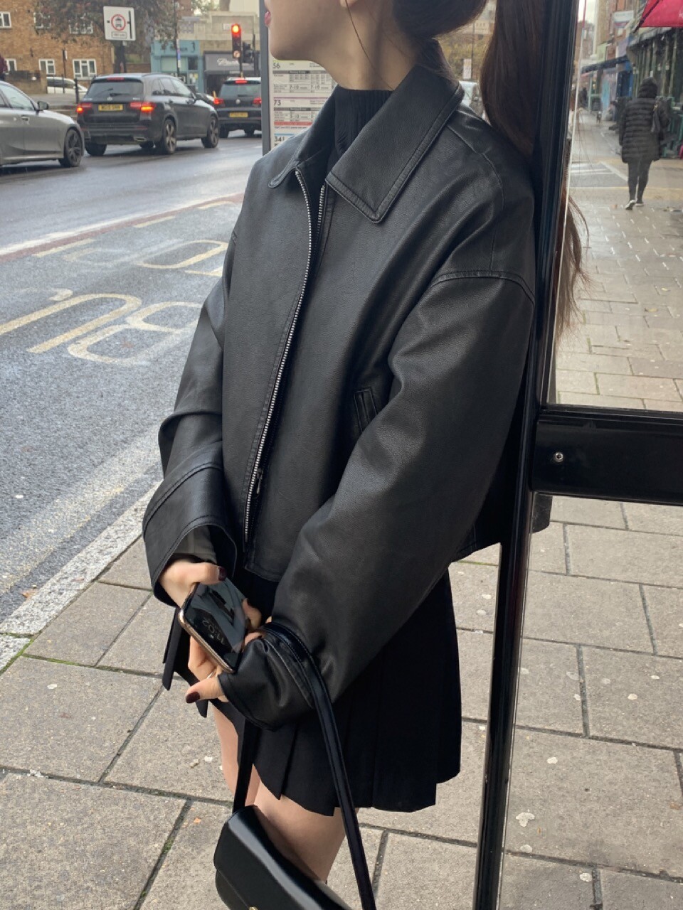 리얼 레더처럼 크랙 감이 고급스러운 재킷 매트한 질감으로 피그먼트 가공을 한 원단입니다.